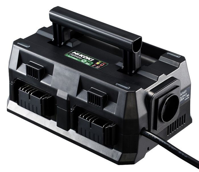 Multi-Port Rapid Smart ChargerUC18YTSLHiKOKI's Premium Multi Port Rapid Smart Charger is at the heart of our unbeatable Lithium Ion battery performance, jam packed with time saving features. Our Fan-Cooled Smart Chargers work intelligently when charging batteries to ensure safe electrical transfer and a long service life - providing up to 1500 re-cycles on premium batteries. Product Info4 Charging Ports Switchable Charging Modes - Simultaneous (charge all at once), or Sequential (charge one at a time)Suitable for charging ALL Hitachi and HiKOKI 18V and 36V Multi-Volt batteries52min charging for 1440W (BSL36B18) battery32min charging for 1080W (BSL36A18) battery AC Power out - 230V/8A2 x 5V/2A USB port - charges devices like smart phones Fan-cooling technology to protect and provide longer battery life Cutting edge 3 way protection technology prevents battery from overcharging and overheating Fastest charging time in succession - no need to wait between batteries Compatible with generators