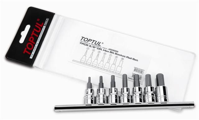 - TOPTUL 7pc 3/8dr METRIC 3-10mm HEX BIT SOCKET SET ON RAIL