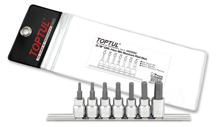 - TOPTUL 3/8dr HEX BIT SOCKET RAIL 7pc SET